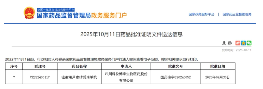 2025年9月30日,国家药品监督管理局(NMPA)正式批准靶向人滋养细胞表面抗原2(TROP2)的抗体偶联物药物(ADC)——芦康沙妥珠单抗(sac-TMT,商品名:佳泰莱®,SKB264/sac-TMT)的第三项适应证,用于治疗经表皮生长因子受体(EGFR)酪氨酸激酶抑制剂(TKI)治疗后进展的EGFR突变阳性局部晚期或转移性非鳞状非小细胞肺癌(NSCLC)成人患者。这是全球首个在EGFR-TKI经治人群中获批适应症的ADC类药物;更为重要的是,与目前的标准治疗含铂双药化疗相比,芦康沙妥珠单抗单药治疗是目前唯一在PFS和OS上均取得具有显著统计学改善和重大临床价值提升的治疗方案。