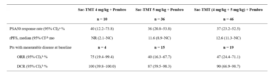 数据表明,sac-TMT联合pembro在mCRPC人群中具有良好的抗肿瘤活性与可管理的安全性。